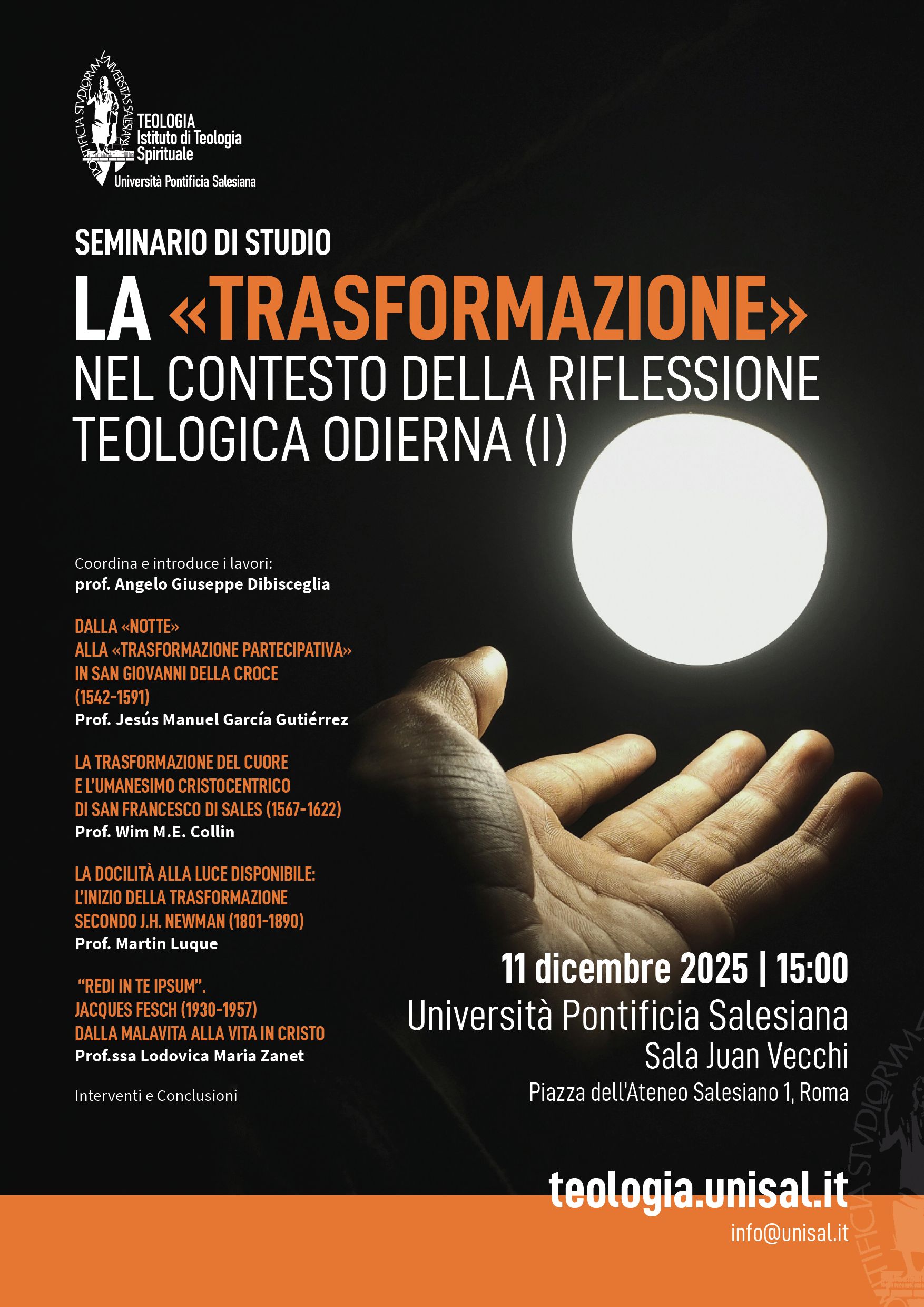 Seminario: La trasformazione nel contesto della riflessione teologica odiernaPrimo di due seminari di studio, promossi dall'Istituto di Teologia spirituale, volti ad esplorare la trasformazione spirituale come dinamica centrale della vita cristiana.