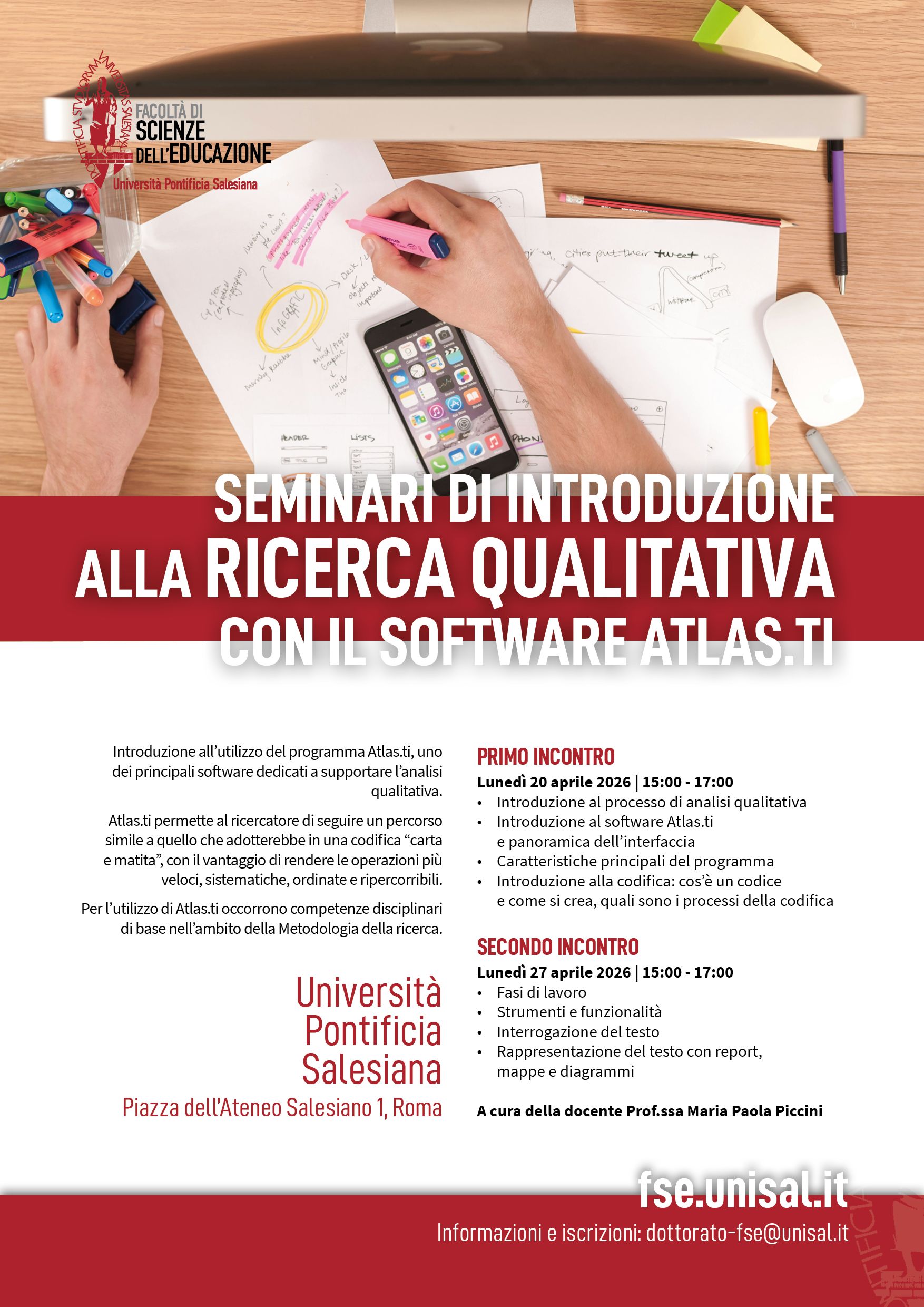 Introduzione alla ricerca qualitativa con il software Atlas.ti: 2° seminarioSecondo seminario di introduzione all’utilizzo del programma Atlas.ti, uno dei principali software dedicati a supportare l’analisi qualitativa nell’ambito della Metodologia della ricerca. Informazioni e iscrizioni: segreteriafse@unisal.it