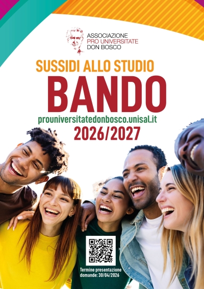APUDBO - Bando UPS Sussidi allo Studio 2026/2027Termine per l'invio delle domande di partecipazione al Bando UPS per i Sussidi allo studio per l’anno accademico 2026/2027, dell'Associazione Pro Universitate Don Bosco ETS. Destinato agli studenti già iscritti o che intendono iscriversi in una delle Facoltà dell’Università Pontificia Salesiana. UPS |
